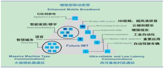 國際電信聯(lián)盟 ITU 在 2015 年 6 月召開的 ITU-RWP5D 第 22 次會議上明確了 5G 的主要應用場景,ITU 定義了三個 主要應用場景:移動寬帶、大規(guī)模機器通信、高可靠低延時通信