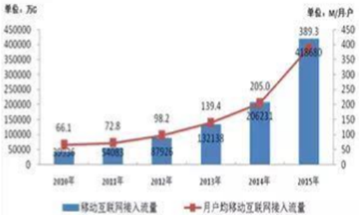 中國 2010-2015 年移動互聯(lián)網(wǎng)流量發(fā)展情況
