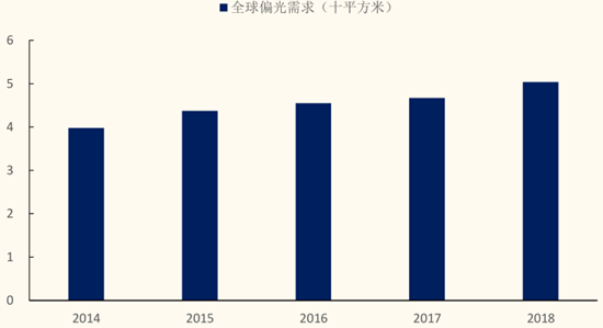 全球 TFT-LCD 偏光片需求量穩(wěn)定增長(zhǎng), 2018 年達(dá) 5 億平方米
