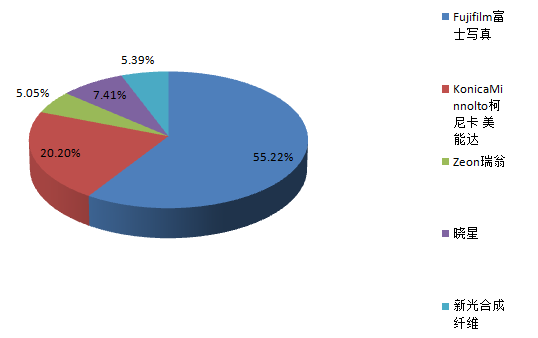 TAC 薄膜生產(chǎn)技術(shù)要求嚴(yán)格,進(jìn)入壁壘高,世界范圍內(nèi)產(chǎn)能相對(duì)集中,據(jù)統(tǒng)計(jì),日本 Fujifilm(富士寫(xiě)真)和 Konica Minolta(柯尼卡美能達(dá))的TAC 產(chǎn)能分別約占全球產(chǎn)能的約 55%和 20%。而國(guó)內(nèi)市場(chǎng)更是 70%-80%被日本和韓國(guó)企業(yè)壟斷。