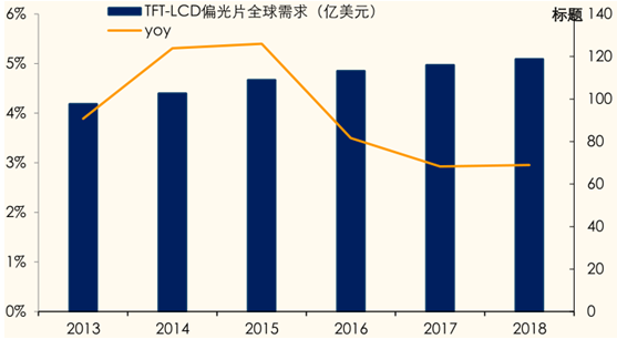 預(yù)計(jì) 2018 年 TFT-LCD 偏光片全球市場(chǎng)容量 119 億美元