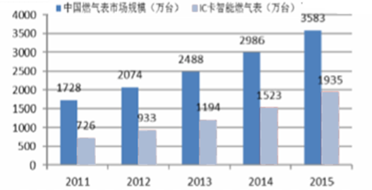 2011-2015年中國燃氣表及IC卡智能燃氣表市場規模
