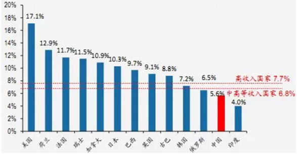 部分國家醫(yī)療衛(wèi)生費用占GDP比例