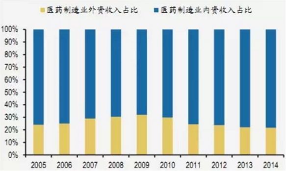 我國醫(yī)藥制造內(nèi)外資收入占比