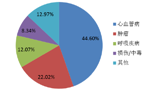 2014年中國城市居民主要疾病死因構成比