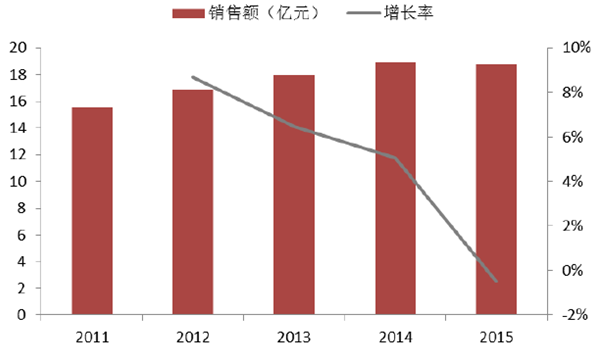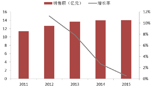 2011-2015年復方降壓藥重點醫院銷售情況