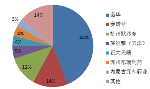 我國降壓藥復方制劑市場主要由纈沙坦+氨氯地平復方、厄貝沙坦+氫氯噻嗪復方、氯沙坦+氫氯噻嗪復方以及纈沙坦+氫氯噻嗪復方四個品種占據,占總體復方制劑市場份額的88%。我國降壓藥復方制劑市場由諾華、賽諾菲、默沙東以及施維雅四家外企所占據,市場份額達75%,國內企業所占比例較小。復方制劑目前也是國內企業申報的重點,復方制劑以其更好的療效和安全性未來還將有較大的增長空間,優質的降壓藥仿制藥企業有望在行業新政下奪取更多的原研市場。