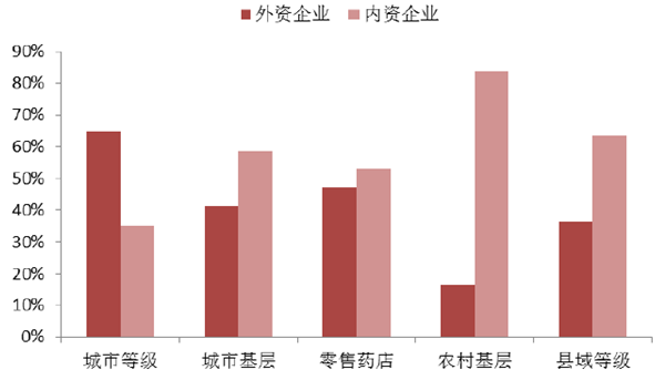 內外企業在不同渠道降壓藥銷售占比