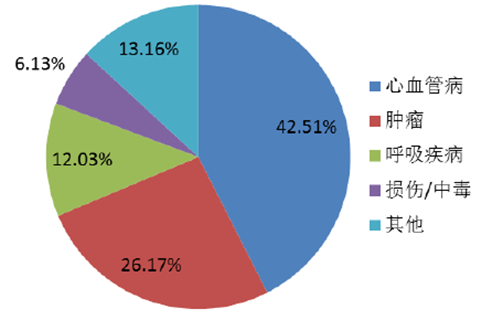 根據2015年的《中國心血管報告》數據顯示,我國心血管病的死亡率近年來持續走高,大幅高于腫瘤、呼吸疾病、損傷等病癥。2014年農村CVD死亡率為295.63/10萬,其中心臟病死亡率為143.72/10萬,腦血管病死亡率為151.91/10萬(腦出血74.51/10萬,腦梗死45.30/10萬);城市CVD死亡率為261.99/10萬,其中心臟病死亡率為136.21/10萬,腦血管病死亡率為125.78/10萬(腦出血52.25/10萬,腦梗死41.99/10萬)。CVD占居民疾病死亡構成在農村為44.60%,在城市為42.51%。每5例死亡中就有2例死于CVD。并且,對比農村與城市CVD死亡率變化趨勢可以看出,農村CVD死亡率從2009年起超過并持續高于城市水平。