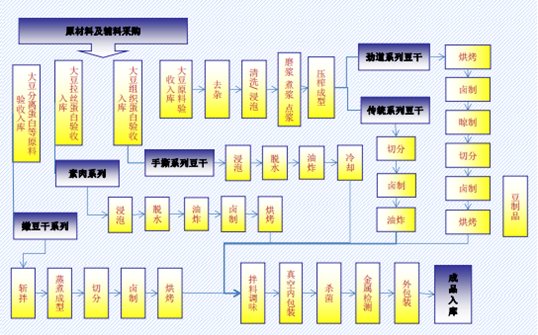 核心提示:1、豆制品的工藝流程圖2、魚豆腐的工藝流程圖3、蜜餞產(chǎn)品的工藝流程圖4、堅果炒貨的工藝流程圖5、休閑肉制品的工藝流程圖6、休閑素食的工藝流程圖1、豆制品的工藝流程圖