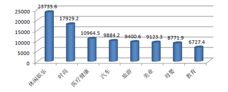 2014年微信公眾號數(shù)量大漲376%,2016年數(shù)量超過1200萬。在不同行業(yè)的眾多微信公眾號中,休閑娛樂類微信公眾號文章最受讀者喜愛,以23735.6次閱讀量居于首位,其次是時尚類和醫(yī)療健康,閱讀量分別為17929.2、10964.5。此外,汽車、旅游、母嬰、教育等生活類公眾號同樣受關(guān)注較多。
