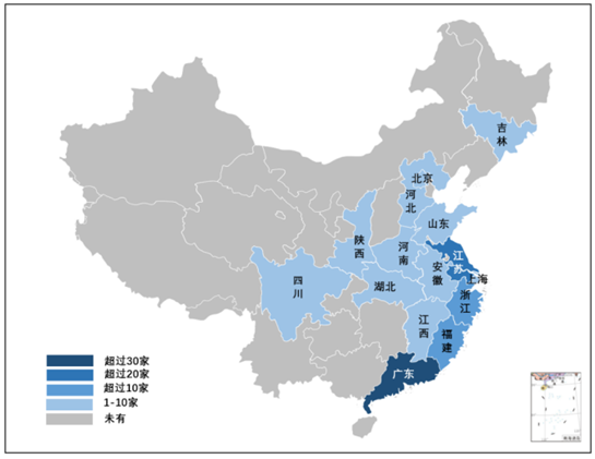 我國(guó)照明行業(yè)上市公司分布情況如下: