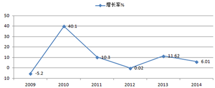 2009-2014年我國PCB電路板產值增長率
