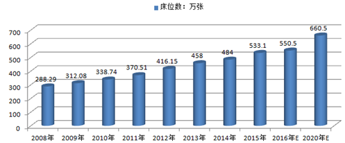 為了滿足不斷增長的就醫需求,我國醫療機構的服務能力也在不斷提升。根據國家統計局的數據顯示,2008年我國醫院床位數為288.3萬張,2015年達到533.10萬張。預計2020年我國醫院床位數將達到659.82萬張,期間復合增長率為10.90%。病區床位數量的不斷增長和病區醫護工作工作量的不斷增加都對病區信息化支持提出了更多的需求。