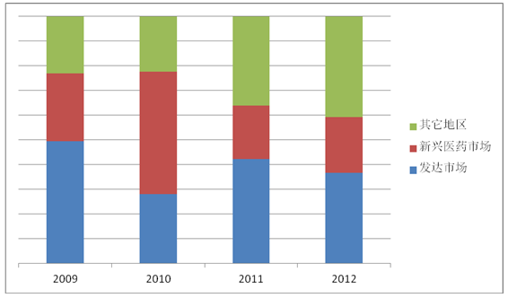 發達市場中,美國市場仍然居于首位,占全球藥物支出總量的1/3,至2018年其復合年均增長率預計達到5-8%,高于過去五年的3.6%;而歐洲市場,為限制醫療支出,尤其是藥品支出而實施的經濟緊縮措施,導致藥品支出下降或增長速度降低,這一情況預計將持續到2018 年。