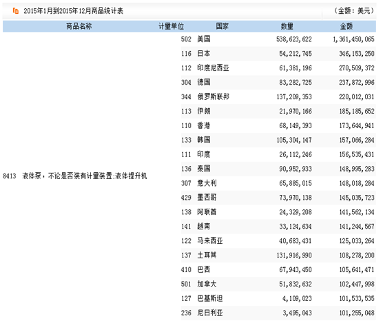 根據中國海關數據顯示,2015年我國泵出口主要國家及地區分析如下: