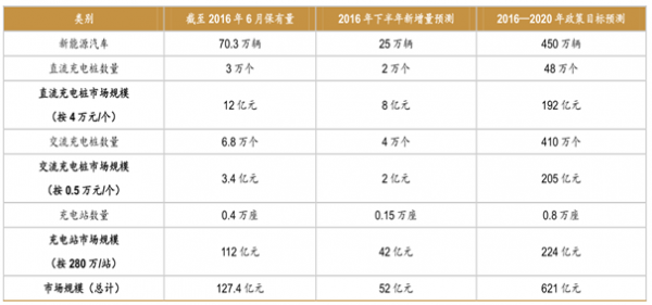 新能源汽車車樁配 比缺口巨大:截至 2016 年 6 月底,新能源汽車累計保有量達到 70.3萬輛,充電樁累計 10.6 萬個,車樁配比約為 7:1,遠遠達不到標配 1:1。其中公用樁 8.1萬個,私人樁 2.5 萬個;直流樁 1.4 萬個、交直流一體樁 1.7 萬個、交流樁 5.2 萬個,充電站 4000 個,與 2020 年的規劃目標相差甚遠,這為充電樁市場帶來了廣闊的市場空間。
