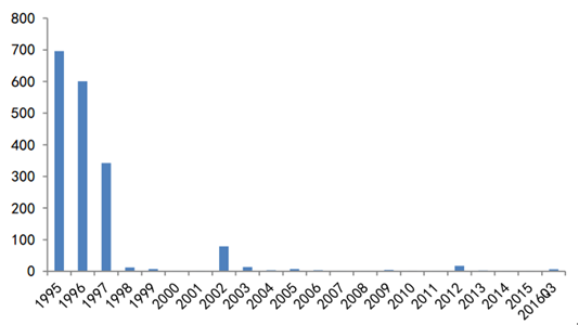 我國尿素的進(jìn)口數(shù)量(單位:萬噸)