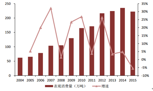 我國(guó)環(huán)氧丙烷表觀消費(fèi)量