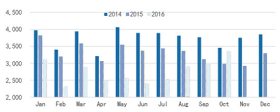 現(xiàn)階段黃驊港由于朔黃線的價格優(yōu)勢,不論淡旺季基本滿產(chǎn)運行。考 慮到全國煤炭用量呈現(xiàn)明顯的季節(jié)性變化,而朔黃線會優(yōu)先供應(yīng),基本不受季節(jié)影 響,故未來的煤炭運量的季節(jié)性變化會更多的表現(xiàn)在大秦線的運量上?偭糠矫,由于煤炭鋼鐵的供給側(cè)改革以及國家對新增火電的嚴(yán)格限制,運量回到14年高點可能性已經(jīng)很小,但回升到接近15年的水平是有較大機會的。