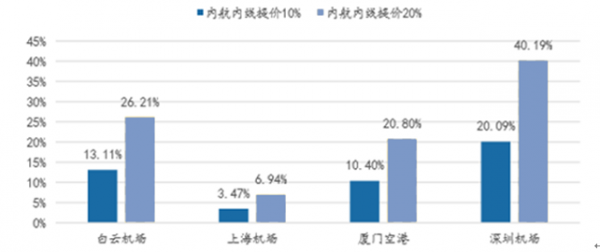 內(nèi)航內(nèi)線提價(jià)對(duì)各機(jī)場(chǎng)利潤(rùn)提升明顯