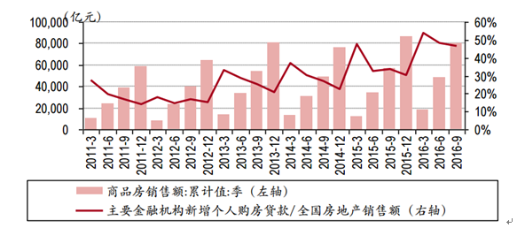 國內主要金融機構新增個人購房貸款占全國房地產銷售額比