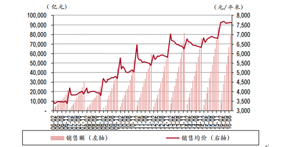 從未來趨勢判斷,需求方面,一二線城市小學在校人數同比增長明顯,顯示 區域人口凈流入加速,而三四線城市的小學生人數的持續下降則顯示出后續 住房購買力的下降;供給方面,一二線城市的土地供應稀缺,成交溢價率高 企,未來可售資源的匱乏或加重目前的供需矛盾,因而房價有自發通過上漲 調節供求的動力,未來受到市場整體調整影響不可避免,但在貨幣政策穩定 的背景下,后續一二線熱門區域房價仍將得到剛需的有力支撐。預計 2017 年全國商品房銷售額同比下降 10.9%,投資額同比增長 3.5%;新開工面積同比下降 10%,銷售面積同比下降 10%。