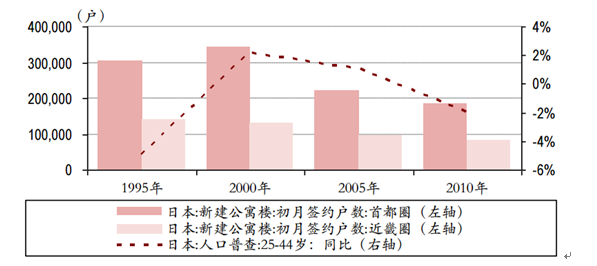 日本適齡購房人口增速與新建公寓樓簽約戶數量