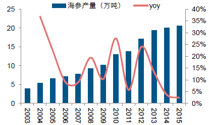 海參產(chǎn)量增速近年來出現(xiàn)大幅下滑