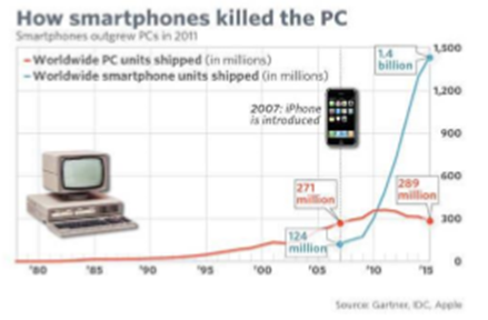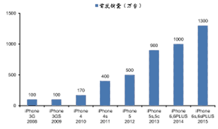 2007 年蘋果手機的橫空出世,宣告了智能手機時代的到來,傳統手機產業自此發 生顛覆性的變化,由諾基亞、摩托羅拉、愛立信等廠商壟斷的功能手機時代宣告終結, 蘋果、三星、HTC 等智能手機開始走進千家萬戶,一個全新的萬億美元產業在短短的幾 年時間里迅速爆發。