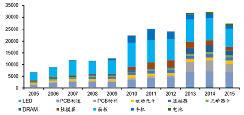 受益于智能手機爆發的紅利,中國大陸電子類企業保持高速的成長趨勢,在電子產 業的各個細分領域都實現了快速的廠長,同時也誕生了許多在全球排名靠前的企業。