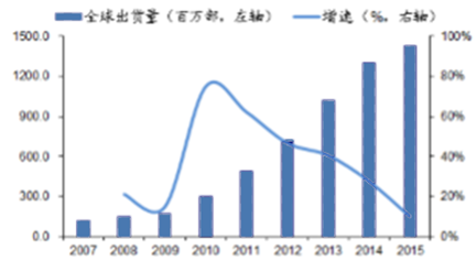 根據市場跟蹤機構 IDC 的報告顯示,2016 年的第三季度全球智能手機出貨總量為 3.629 億部,同比增長 1%,中國大陸市場智能手機出貨總量為 1.151 億部,同比增長 5.8%,其中,中國大陸企業華為、OPPO、VIVO 表現突出。