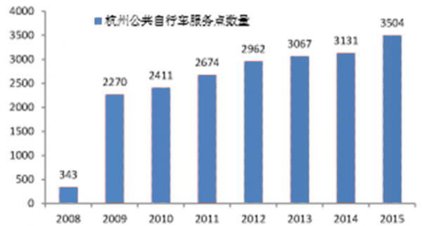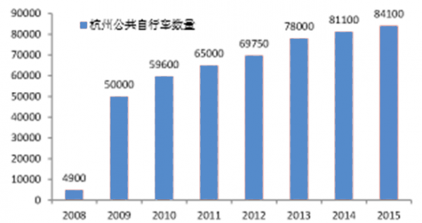 核心提示:從杭州自行車的運營情況來看,杭州市作為國內公共自行車系統的標桿 城市,在運營規模、效率、經驗等方面均領先于國內其他城市,杭州公 共自行車系統在 2008 年開始建立,得益于杭州市政府對杭州自行車系 統包括在自行車服務點的設點,配套的非機動車從杭州自行車的運營情況來看,杭州市作為國內公共自行車系統的標桿 城市,在運營規模、效率、經驗等方面均領先于國內其他城市,杭州公 共自行車系統在 2008 年開始建立,得益于杭州市政府對杭州自行車系 統包括在自行車服務點的設點,配套的非機動車道的建設,對項目的資 金補貼等方面的大力支持,杭州市公共自行車系統從第一年的 343 個服 務點和 4900 輛自行車起步,經過不到 10 年的快速發展,在 2015 年年 底總計擁有 3504 個服務點和 8.41 萬輛公共自行車,平均每萬人的公共 自行車擁有量達到了121輛,已經成為了杭州市民交通出行的重要工具