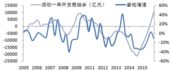 過去 10 年開發(fā)商結(jié)余與土地增速趨勢上大致相同