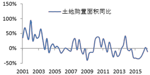 2016年中國房地產行業土地購置面積、人住房貸款平均利率及過去地產銷售增速的回升分析