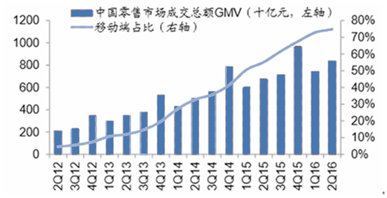 2016天貓雙11全球狂歡節(jié)總交易額1207億,無線交 易額占比81.87%。