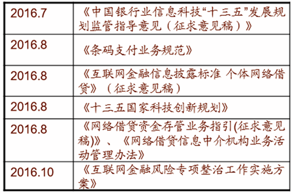 互聯網金融的彈性在于政策,2016年以來從信息披露標準、網絡借貸明確信 息中介,再到前不久頒布的金融風險專項整治,政策的監管已經最嚴厲, 同時對二維碼支付、區塊鏈等的政策態度也開始轉暖,所以我們判斷,互 聯網金融的政策底已現