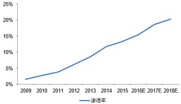 全球車聯(lián)網(wǎng)市場滲透率預(yù)測(單位:%)