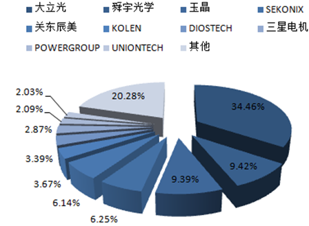 2015 年各大光學(xué)鏡頭廠商出貨量