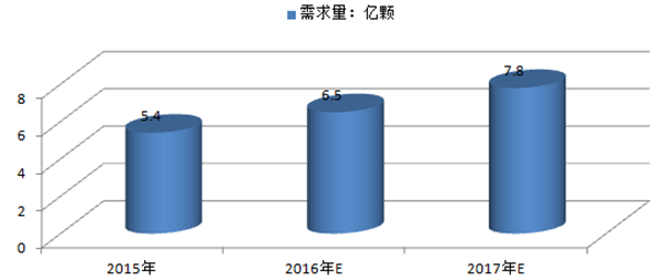 根據(jù)互聯(lián)網(wǎng)消費(fèi)調(diào)研中心(ZDC)的數(shù)據(jù),預(yù)計(jì)中國(guó)手機(jī)廠商對(duì) 800 萬(wàn)像素以上鏡頭的 需求量 2016 年將達(dá) 5.4 億顆,2017 年可達(dá) 6.5 億顆,2018 年可達(dá) 7.8 億顆。