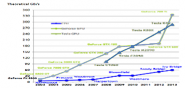 隨著 NVIDIA、AMD 等公司不斷推進(jìn)其 GPU 的大規(guī)模并行架構(gòu)支持,面向通用計(jì) 算的 GPU(General-Purposed GPU, GPGPU)已成為加速可并行應(yīng)用程序的重要手段。 GPU 應(yīng)用于人工智能的深度學(xué)習(xí)得到了谷歌、微軟、IBM、百度等公司的采用。這使 得深度學(xué)習(xí)算法的運(yùn)算效率大幅提升,極大地推動(dòng)了人工智能的發(fā)展。