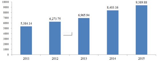 2011-2015 年我國變頻空調產量 (單位:萬臺)