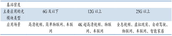 4G 、4.5G 、5G 主要應用的光模塊