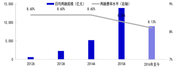 兩融費率的變化主要受央行利率、A股及兩融市場行情、兩融市場競爭形勢等多方面影響。隨著兩融業務競爭會日趨激烈,兩融費率將持續下滑。目前兩融費率在8.13%左右,預計2017年整體水平在8%左右。