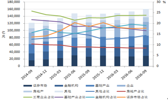 資金信托余額按投向占比 (2014.09-2016.09)