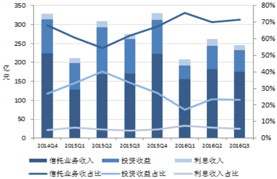 信托公司收入結構 (2014Q4-2016Q3)