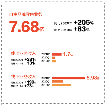 財報顯示,在深受疫情灰犀牛影響的2020年,喜臨門營業收入(56.23億元)和扣非凈利潤(3.13億)同比竟然實現雙位數增長(分別增長15.43%、18.35%);其中,自主品牌零售業務收入全年同比增長26%(2021年一季度更高速增長205%),顯示出旺盛的增長動力。