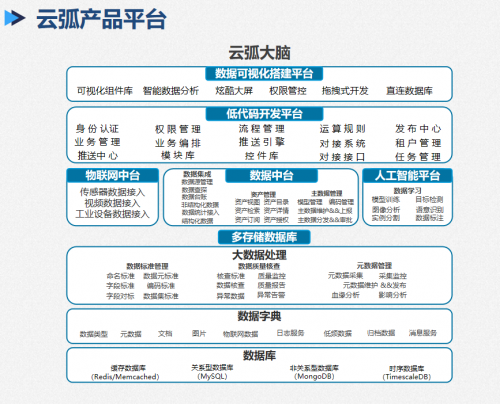 云弧重點發展中間件和Paas等核心軟件和平臺,云狐大腦是云弧基于多平臺構建的數字大腦基礎架構,構建了完整的平臺開發智能應用及方案的技術體系。
