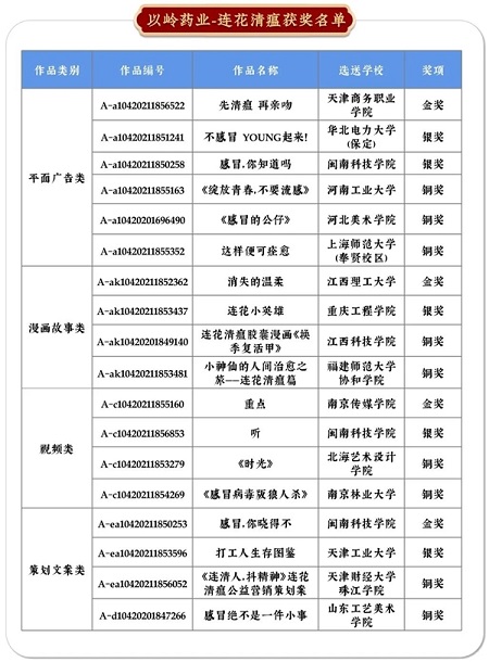 2021年秋,以嶺藥業(yè)-連花清瘟以“連花伴青春”為命題,面向廣大青年開啟創(chuàng)意征集,號(hào)召年輕人追求健康生活,拒絕感冒流感,時(shí)刻保持青春活力。活動(dòng)現(xiàn)場(chǎng),廣告人文化集團(tuán)董事長(zhǎng)李文龍先生揭曉了連花清瘟命題等級(jí)獎(jiǎng)獲獎(jiǎng)名單。