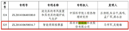 專利號“ZL201410650016.7” 智能頸部按摩器獲“第二十二屆中國專利優秀獎預獲獎項目”。